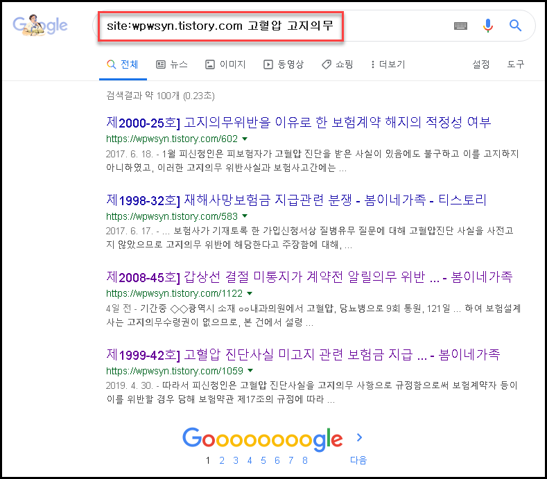 ● 방법: site:wpwsyn.tistory.com [검색1] [검색2] <- 이렇게 입력하시는 제 사이트내 모든 글 검색가능