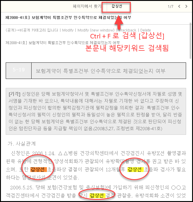 질병, 사고, 혹은 결정문 번호로 검색해 보시면 아실겁니다. 안나옵니다.