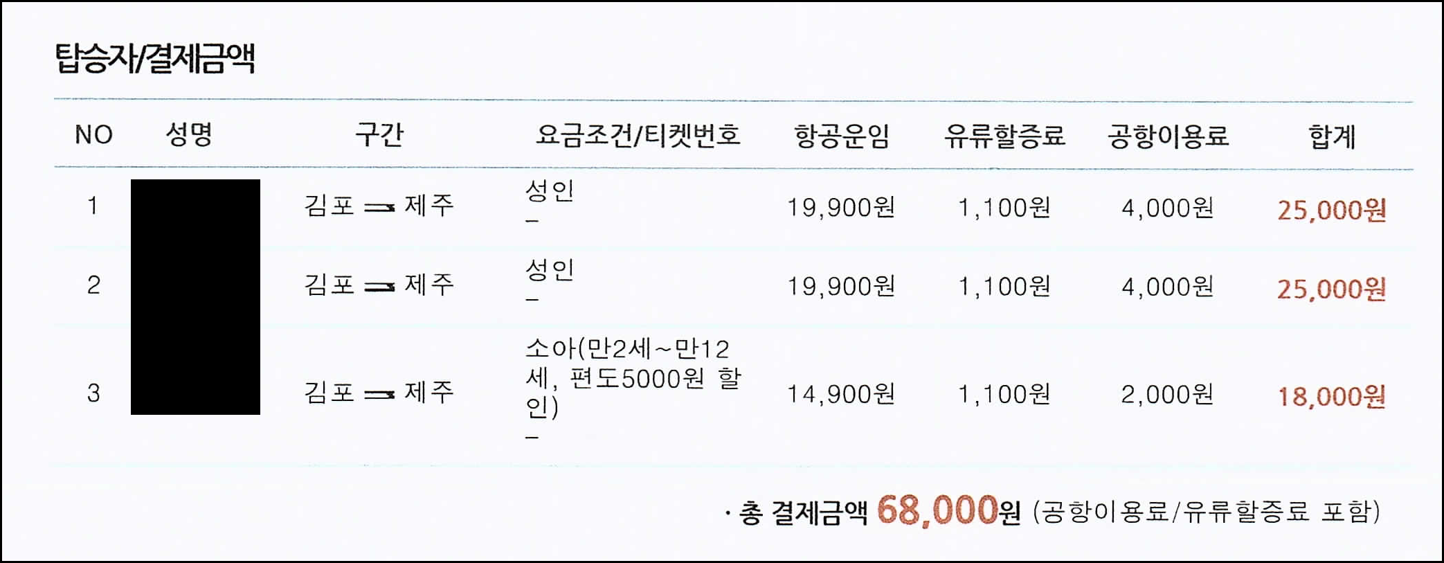 ● 3명 왕복 항공권이 109,000원