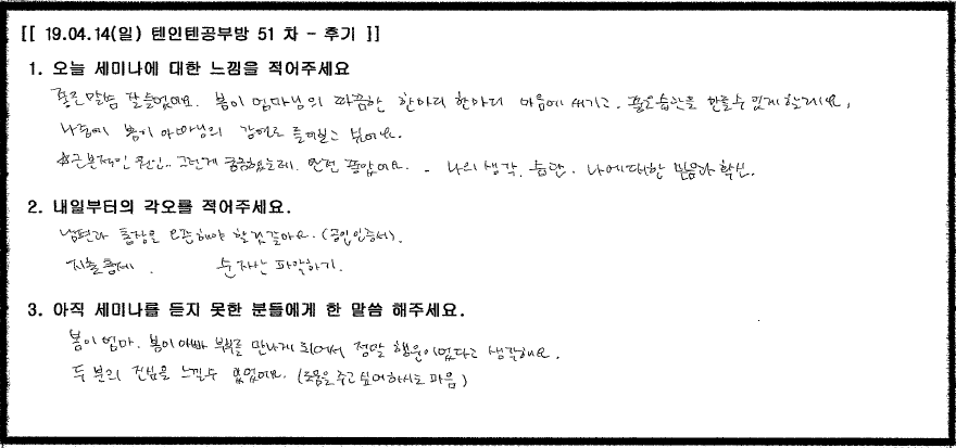 이번기수는 특히 개인적인 고민이 많은 분들이 많이 참석하셨는데.