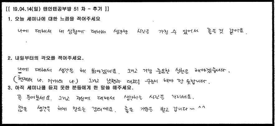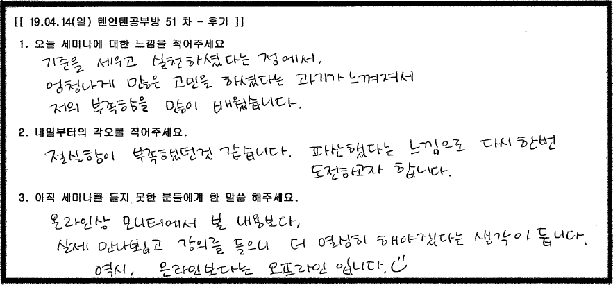참여자의 개인 사정을 듣고 답변을 해 드리면서 힘이 되셨으면 해서 아래의 글을 첨부합니다.