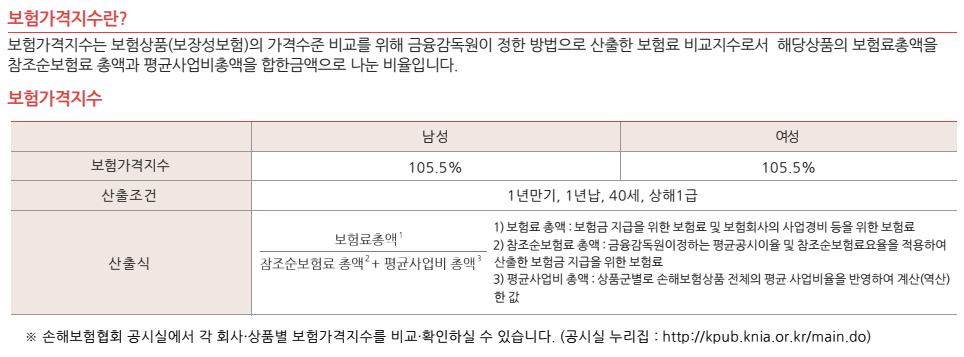 의료물가상승율이 같다는 가정하에40세인 피보험자의 20년 후 갱신보험료 현가는 현재보험료의 2.74배가 되고70세이후 갱신보험료 현가는 평균적으로 5.94배가 될것으로 예측