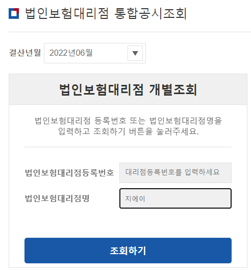 ● 개별 보험대리점 내역을 조회하는 방법