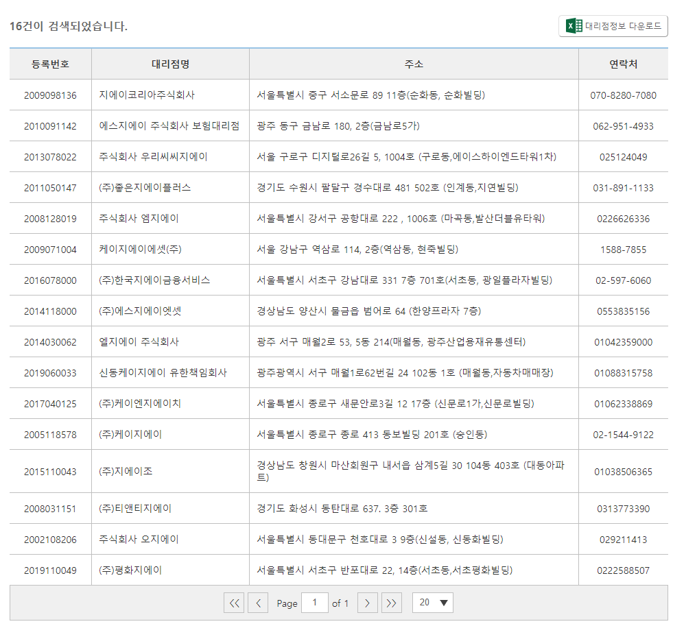 1. 위 링크를 클릭 -> 보험 대리점명 검색