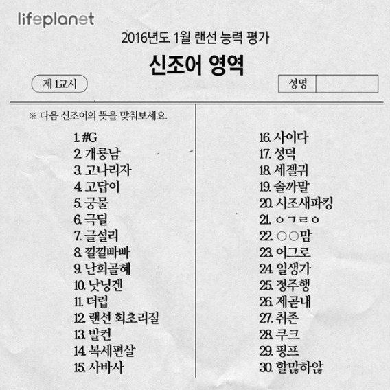 라이프 플레닛에서 2016년 신조어 관련 자료가 나온게 있는데.