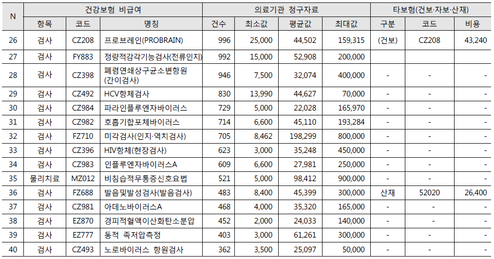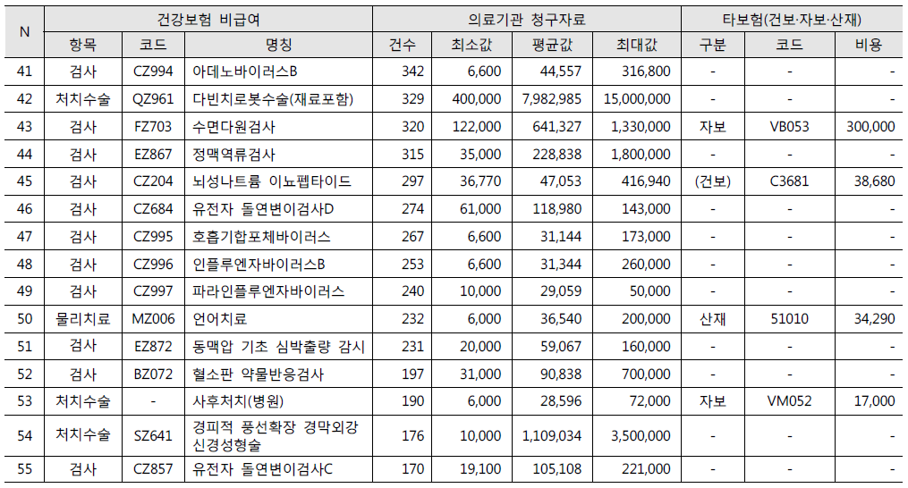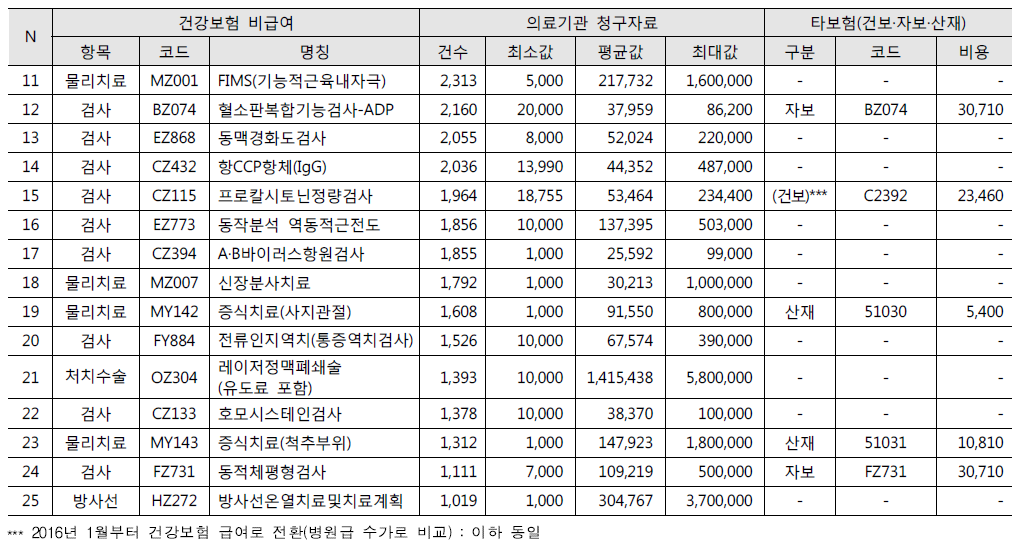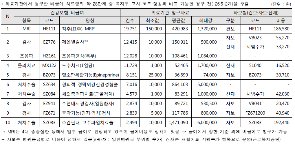 ● 청구건수가 많은 100대 비급여 항목 총정리
