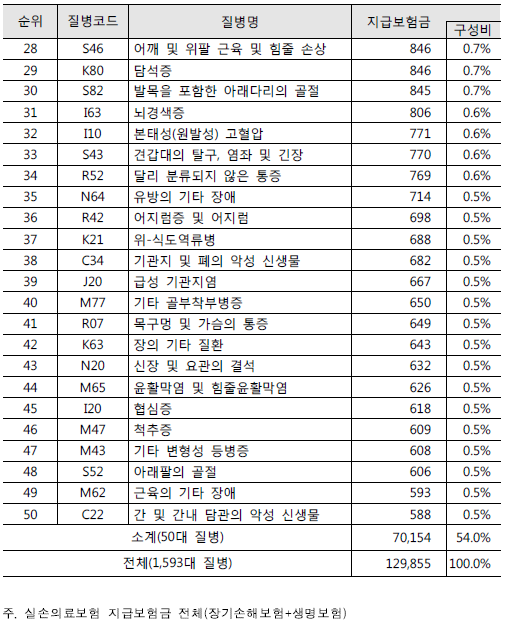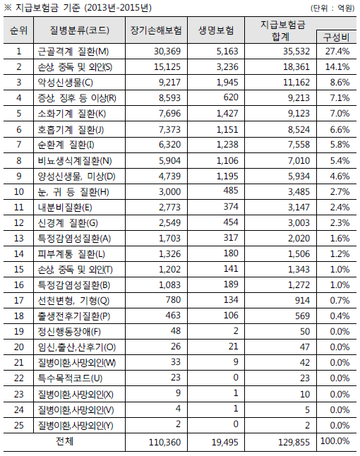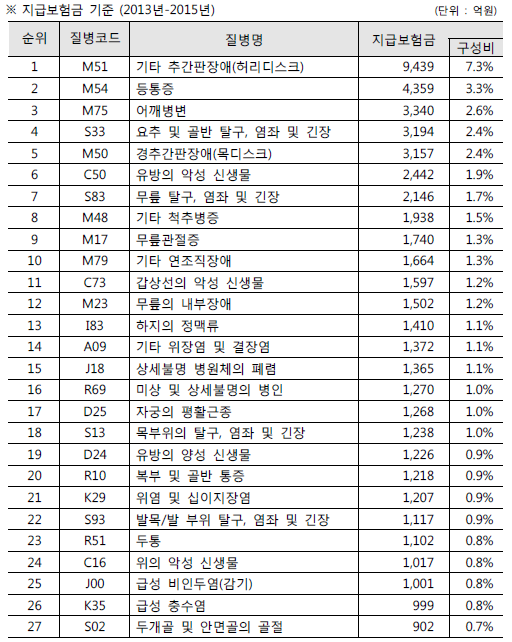 ● 한국표준질병사인분류표(KDI) 보험금 지급이 많은 질병코드 정리