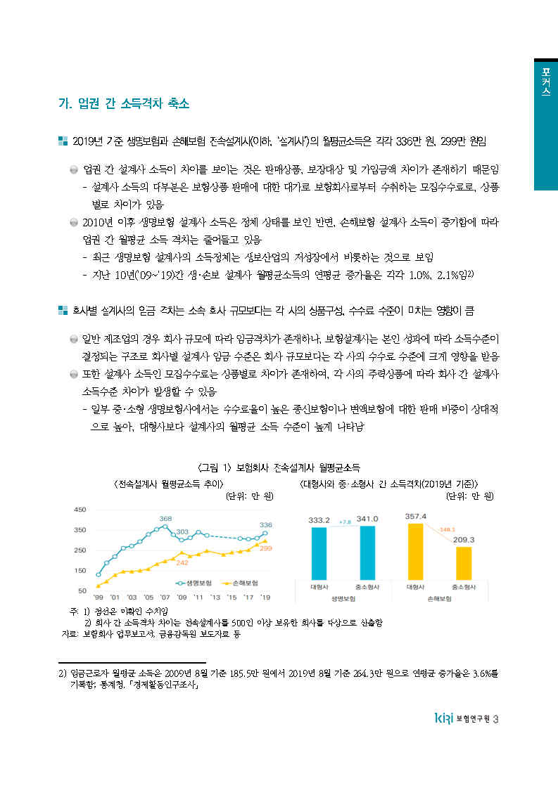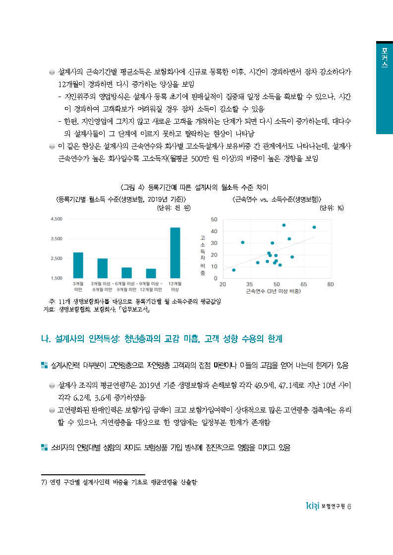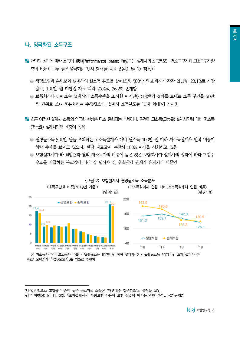 - 설계사의 양극화된 소득분포와 소득수준 정체 현상