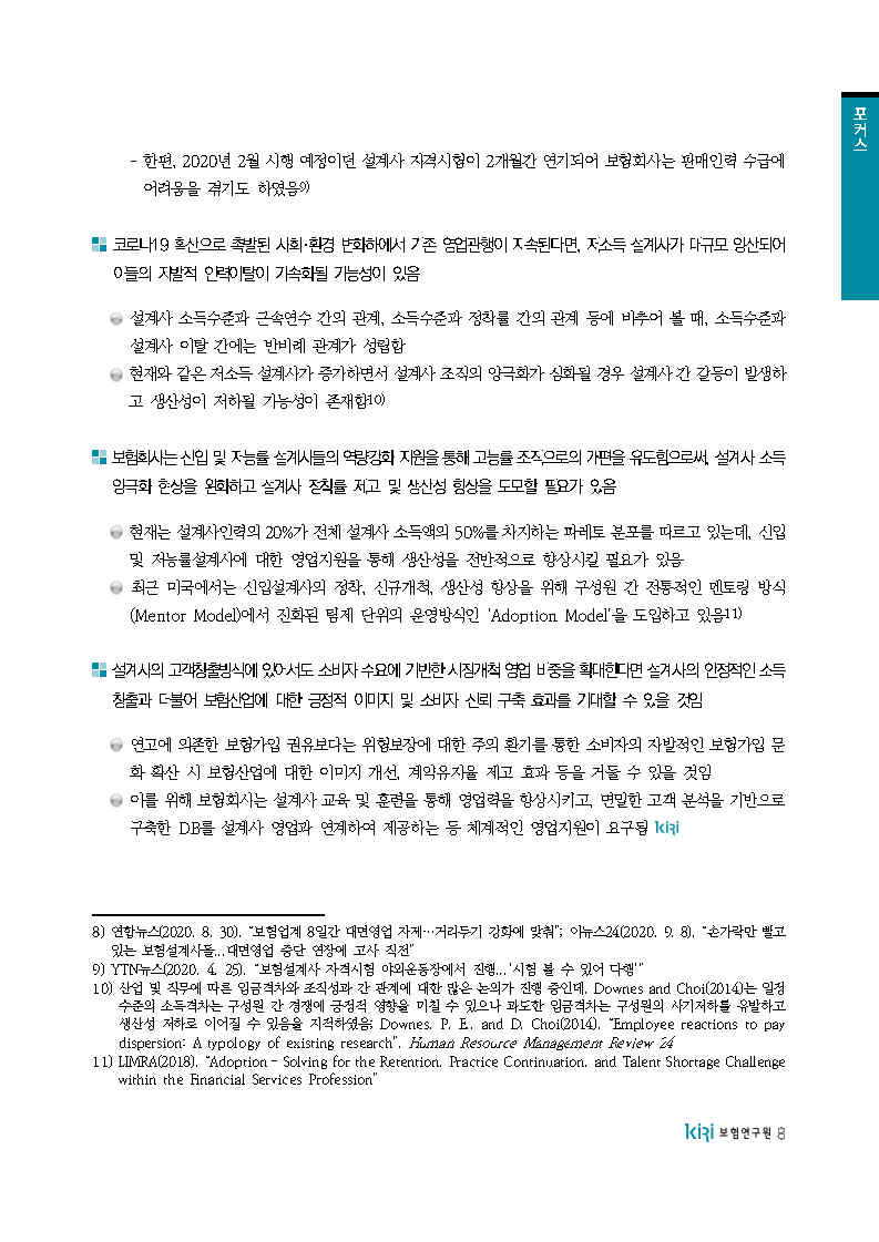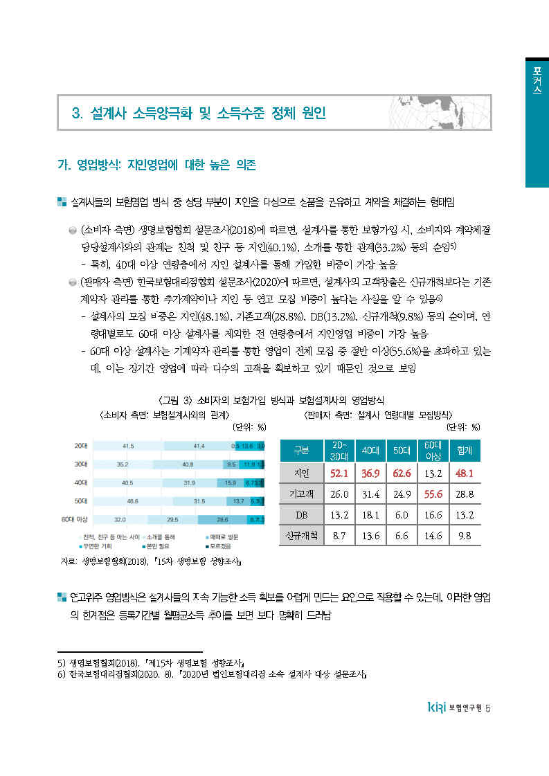 보험설계사로 유입되는 젊은 사람이 줄고 설계사의 규모도 줄어들고 있다는 점을 볼때