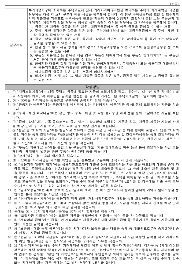 별표 [별지 제1호의2서식] 주택취득자금 조달 및 입주계획서