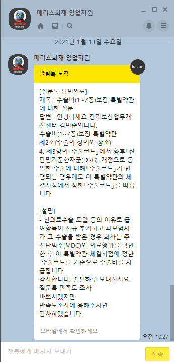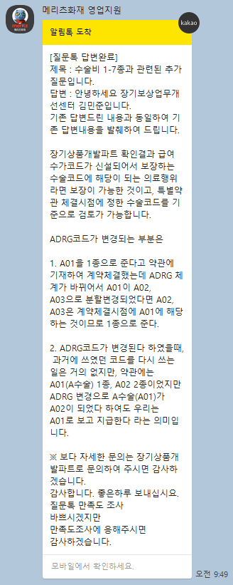 제3항의「수술코드」에서 향후「진단명기준환자군(DRG)」개정으로 동일한 수술에 대해「수술코드」가 변경되는 경우에도 이 특별약관의 체결시점에서 정한「수술코드」를따릅니다.