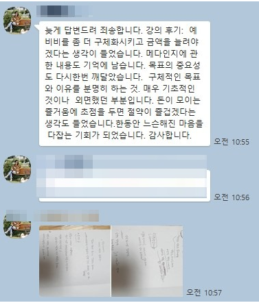 강의 후기를 카톡에 적어달라고 얘기 드렸습니다.