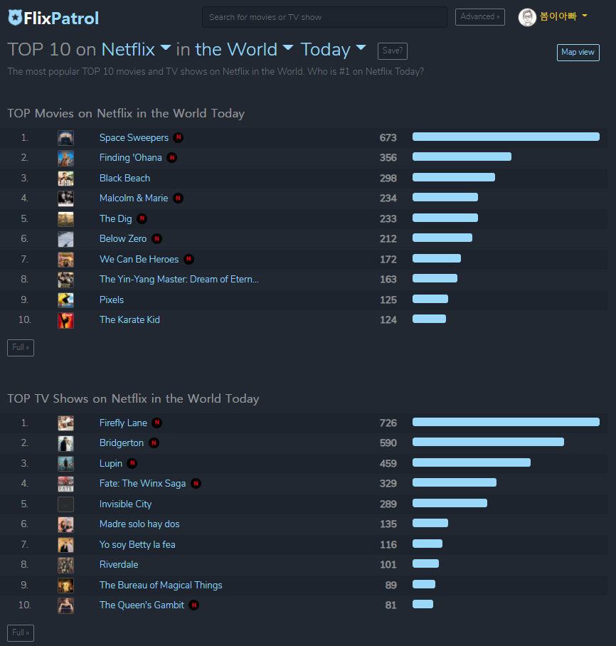 flixpatrol.com/ <= 순위정보 사이트 링크