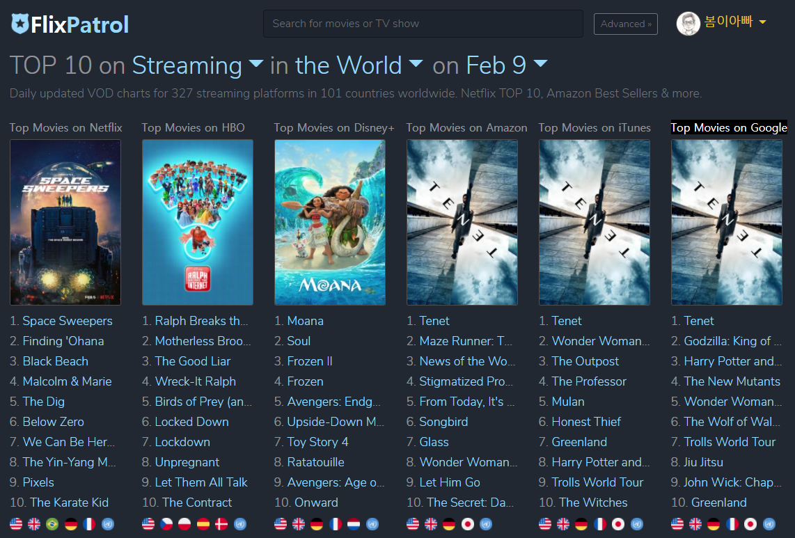 저는 수시로 넷플릭스와 디즈니 아마존 구글의 영화와 드라마 순위를 봅니다.