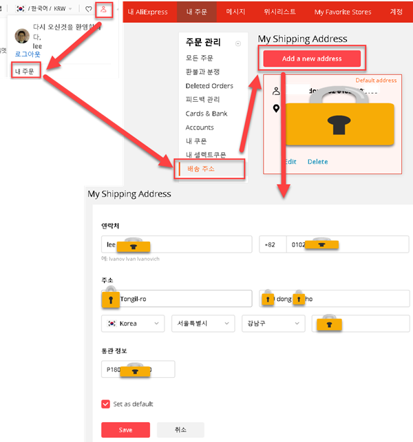 - 알리익스프레스(AliExpress) 가입 & 배송지입력 & 통관번호 입력하기
