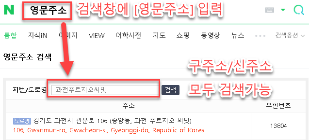 a. 영어주소는 네이버에서 [영어주소]로 검색해서 찾으면 됩니다