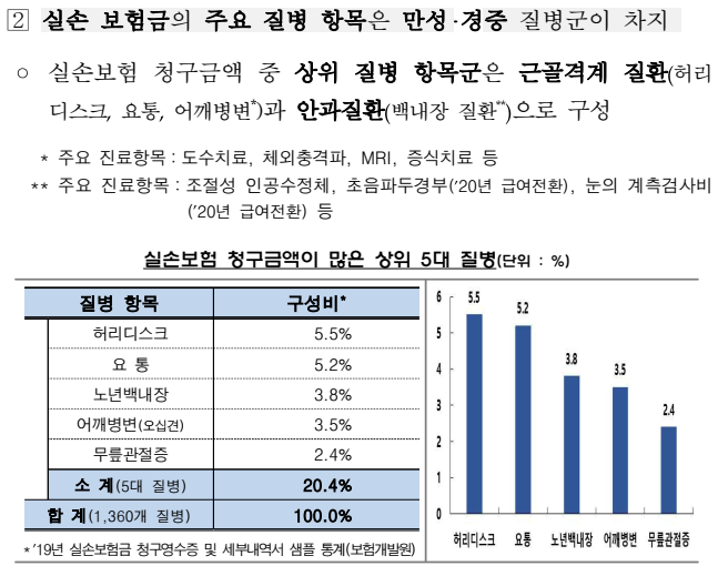 5. 근 골격계 질환, 백내장에서 가장 많은 보험금 지급이 발생함