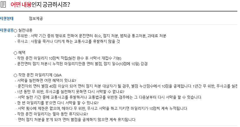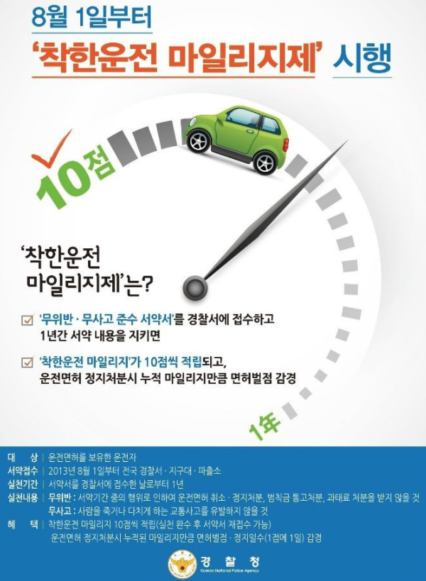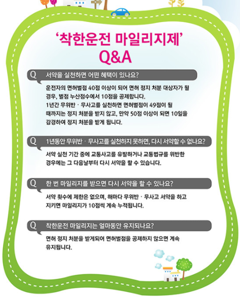 ※ 혹 나중에 벌점으로 면허 정지 처분 받을 경우 착한 운전 마일리지가 여러분을 도울 수 있습니다.