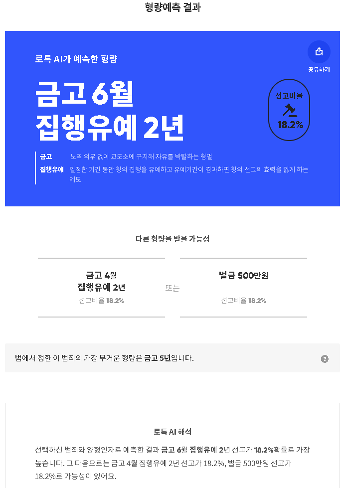 4) 로톡 형량예측 시스템 이용예시 - 형량의 최소, 최대를 예측할 수 있음