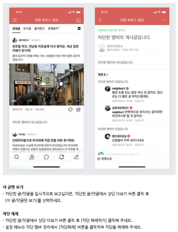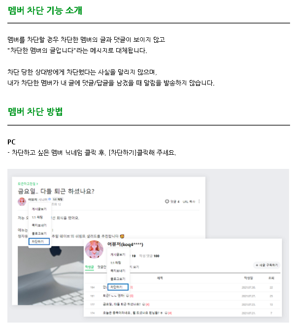 2) 아래 맴버 차단 해제방법 있음 - 현재 모바일만 가능