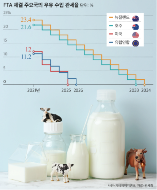 FTA체결로 인해 체결국 우유 관세율은 0%에 수렴할 예정