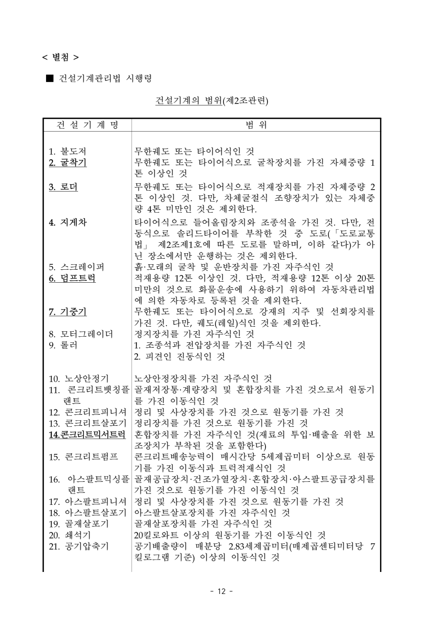덤프트럭은 건설기계관리법 제2조 제1항 제1호8), 건설기계관리법 시행령 제2조 및 별표19)이 정하는 건설기계관리법의 적용을 받는 건설기계에 해당한다. 한편, 건설기계 안전기준에 관한 규칙10)은 위 건설기계의 작업장치의 구조, 규격 및 성능의 기준을 정하고 있으며,