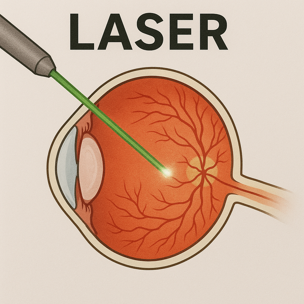 - 레이저 광응고술의 방식: 레이저를 망막에 조사하여 신생혈관을 응고시키거나 퇴화시키는 방법임.