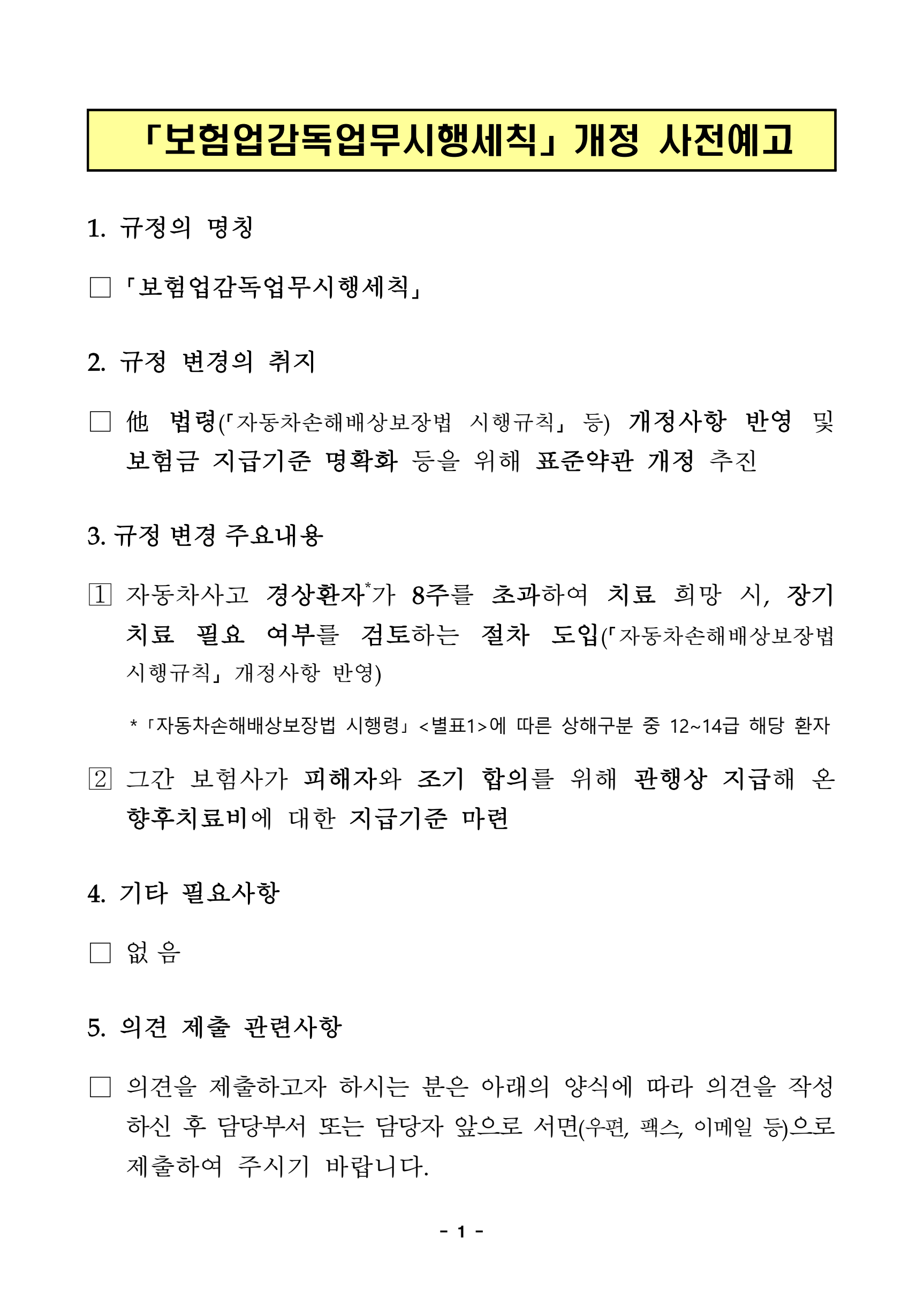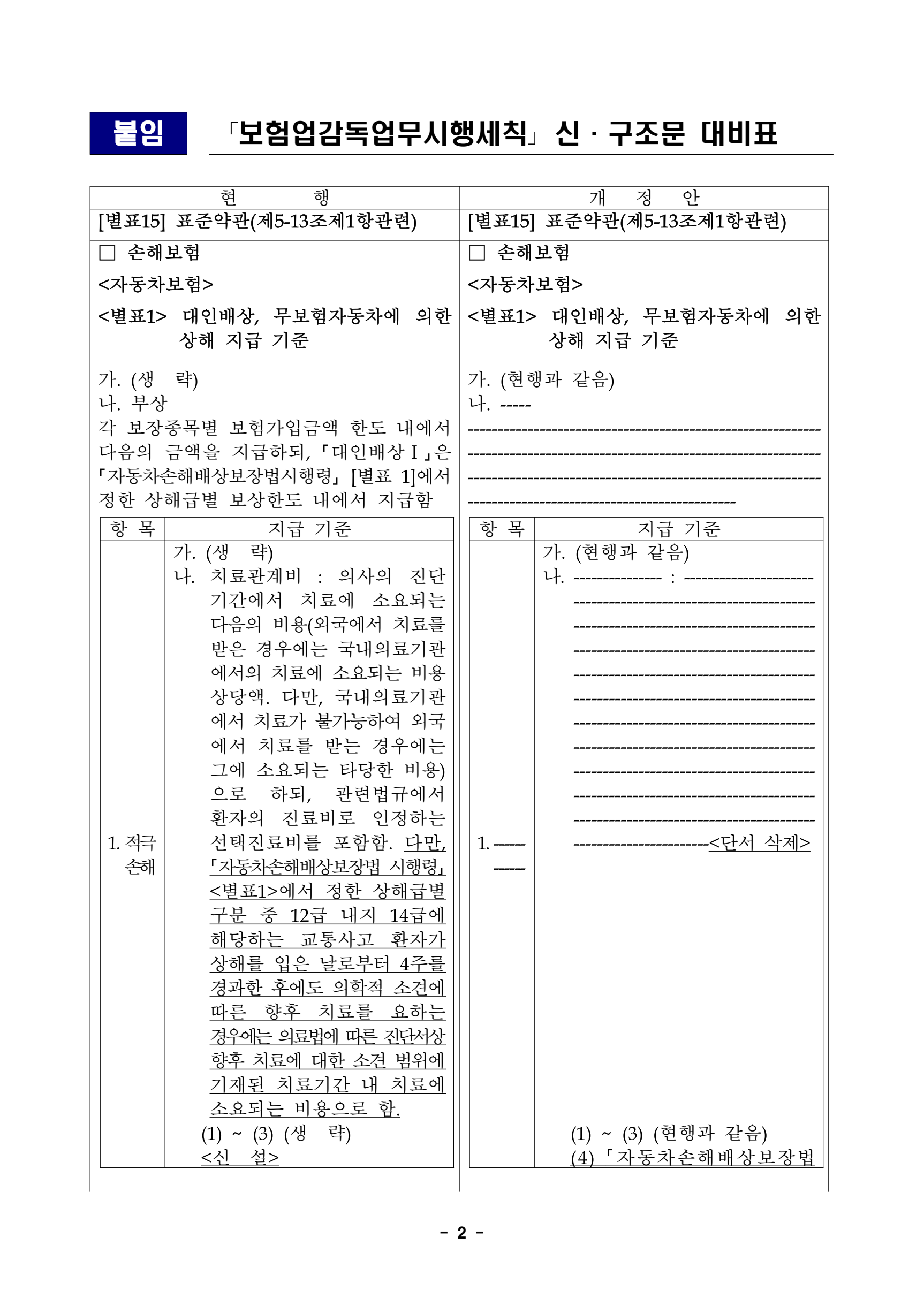 이번 개정은 경상환자의 과잉 진료를 막고 보험금 지급 기준을 명확히 하기 위함입니다.