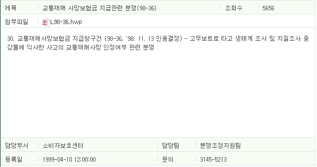 | 제1998-32호] 재해사망보험금 지급관련 분쟁 (0) | 2017.06.16 |