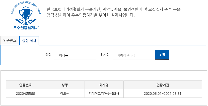 [(주)지에이코리아 보험대리점중 설계사수 1위]
